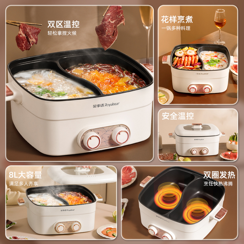 荣事达鸳鸯锅家用电火锅多功能锅一体电煮锅宿舍电锅电热锅专用