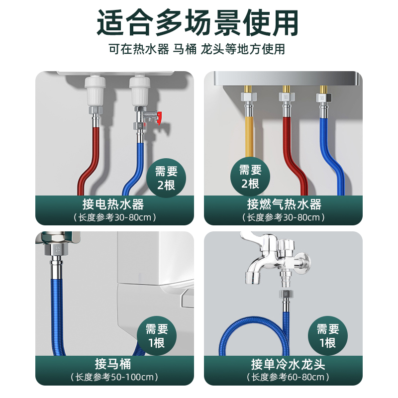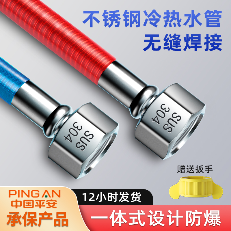 304不锈钢波纹管马桶水管金属4分燃气热水器冷热进水软管保温防爆