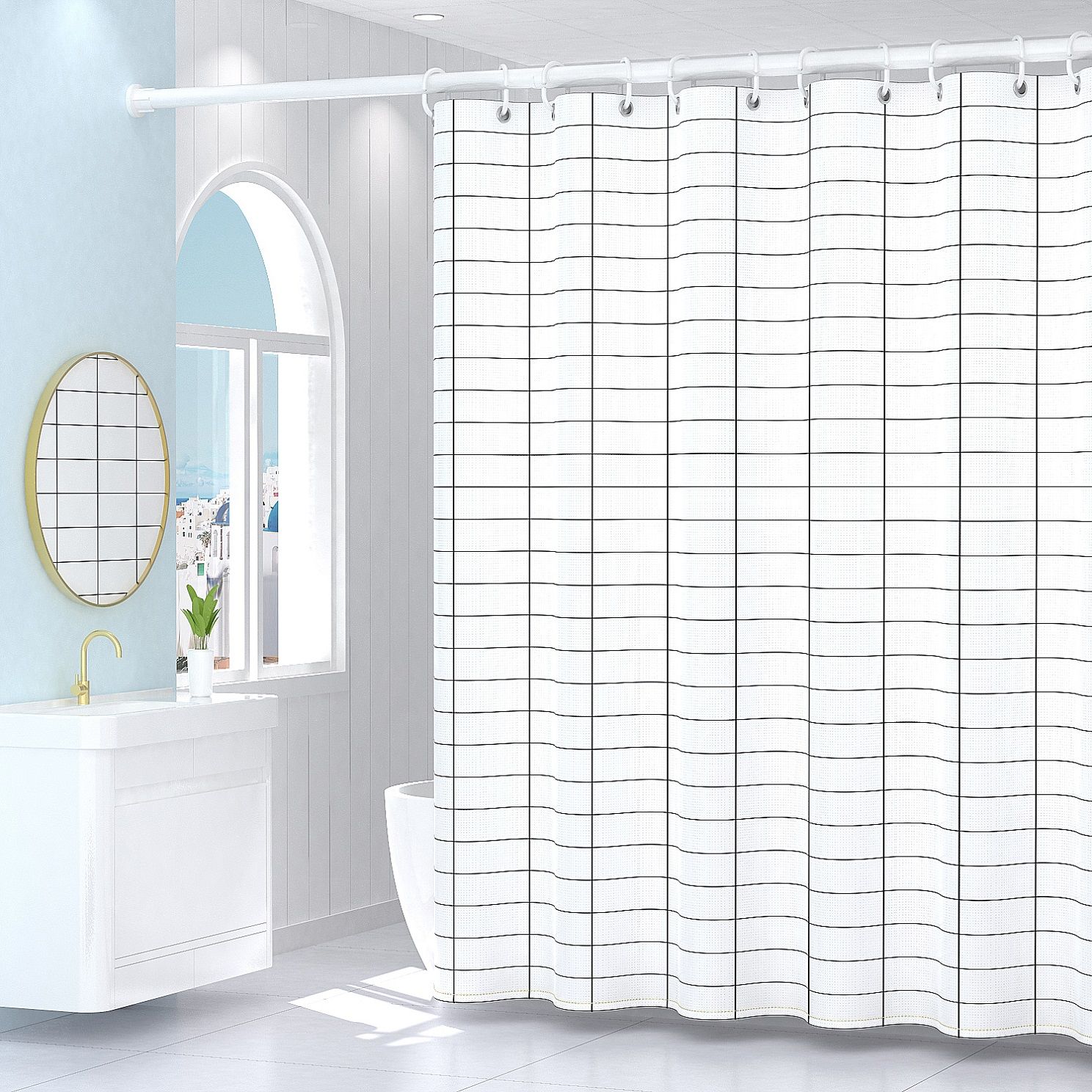 高档浴帘防水防霉洗澡淋浴隔断卫生间挡水帘子浴室免打孔门帘遮挡