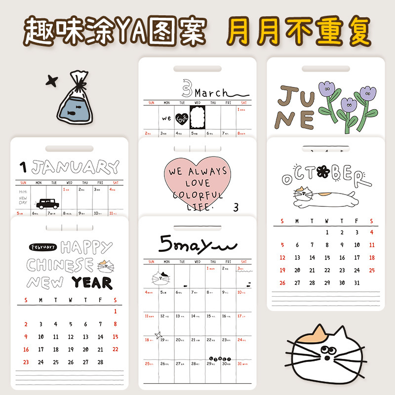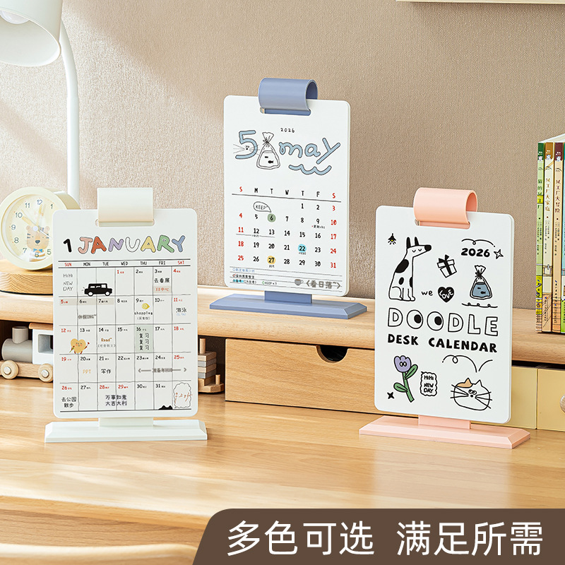 卡通涂鸦台历2025年到2026年新款日历本创意简约桌面摆件马年月历定制工作小计划本商务办公ins风考研日历