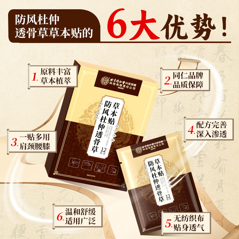 同仁堂透骨贴肩颈椎腰椎热敷肌肉酸痛筋骨疼痛膝盖通络消痛膏药贴