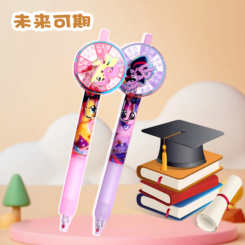 可爱小马幸运转盘转转笔中性笔解压高颜值按动笔st头求签祈愿网红