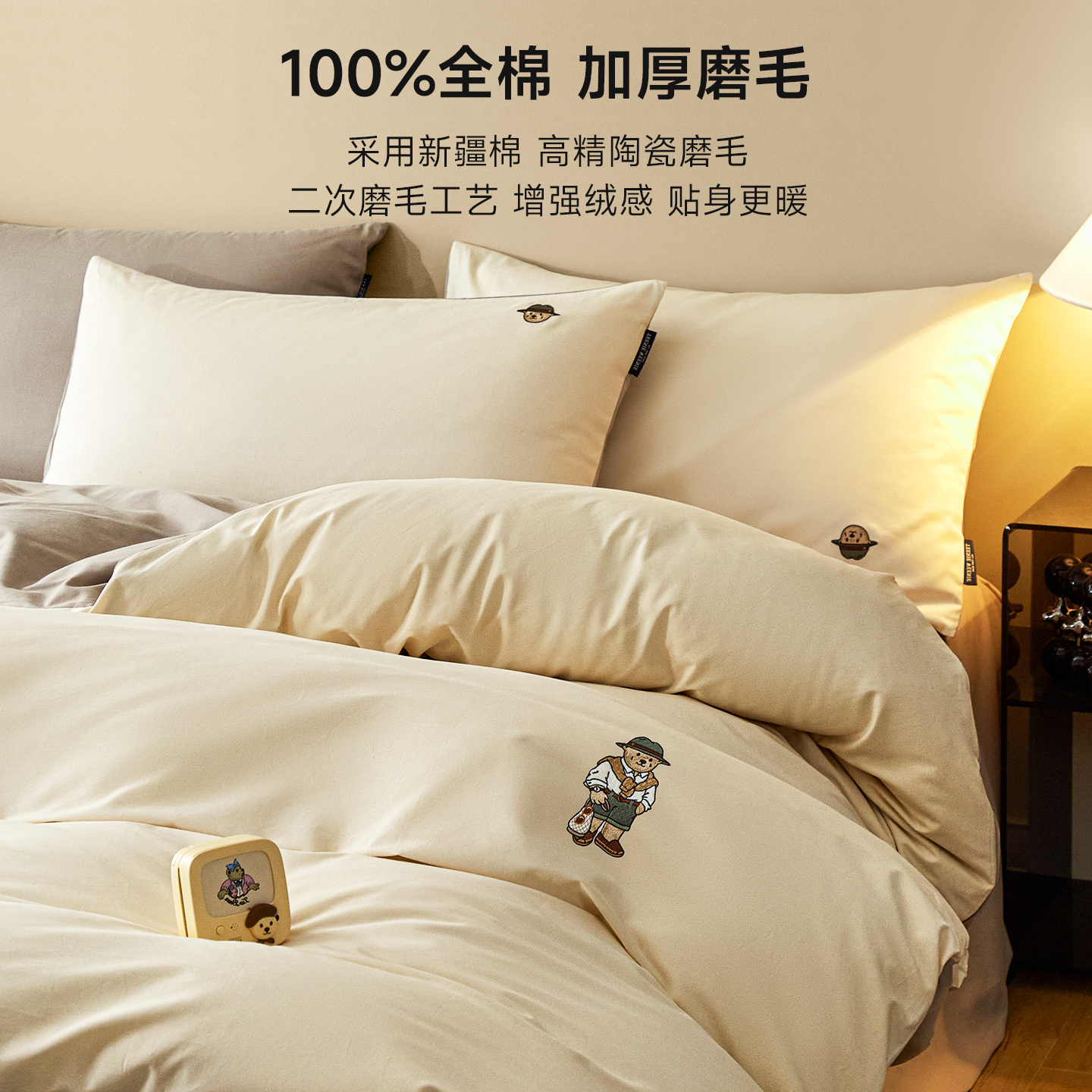 TeenieWeenie小熊牛奶绒四件套美拉德风珊瑚绒被套加绒床单三件套