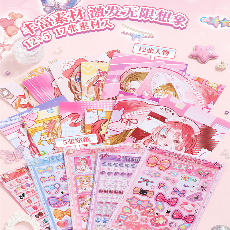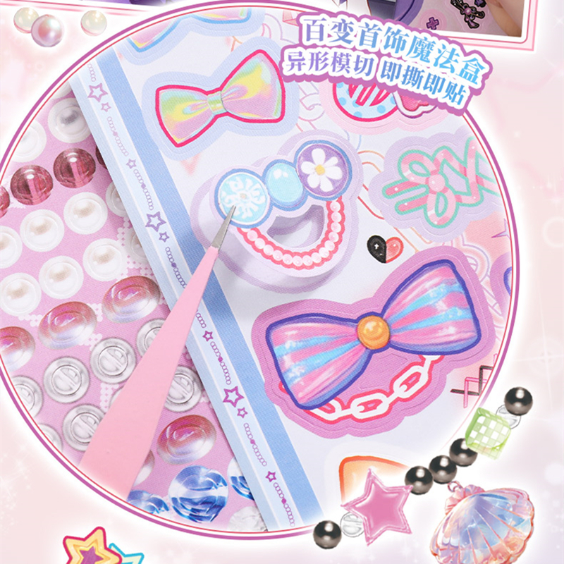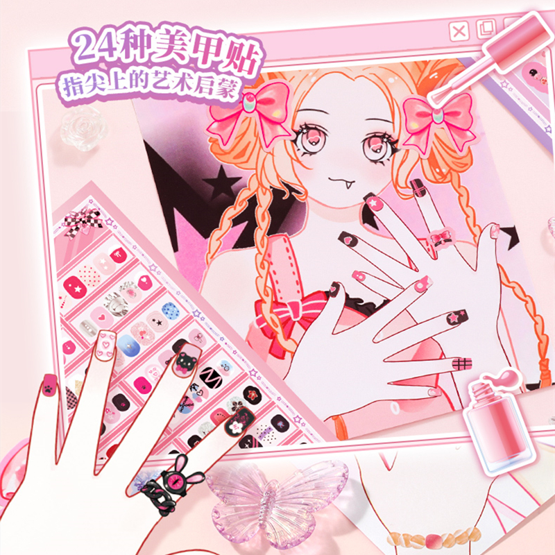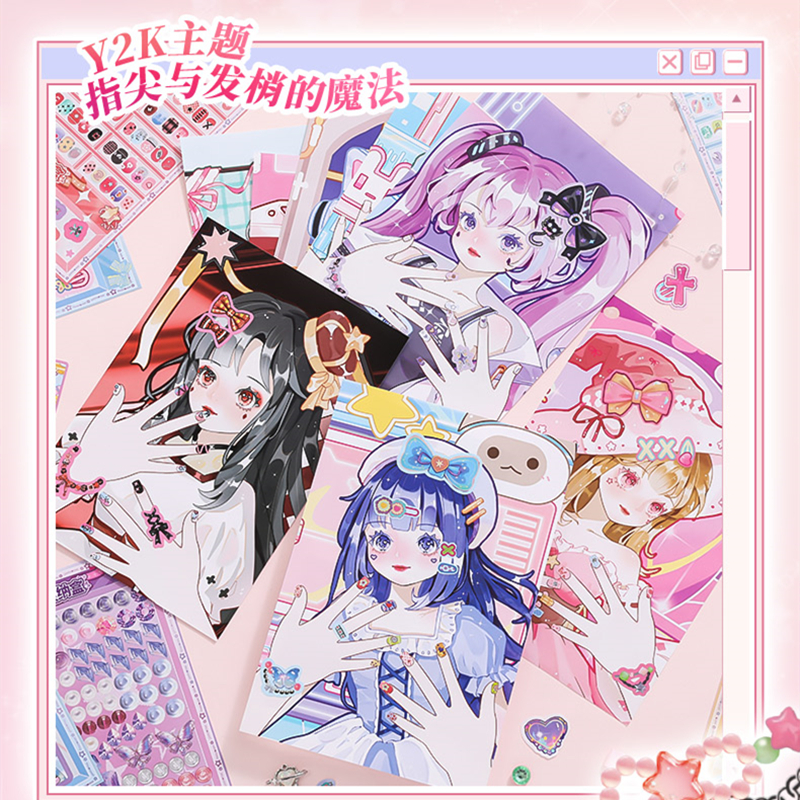 (女孩的最爱)5合1玩法Y2K二次元公主美甲串珠化妆免剪裁益智美妆贴纸安静书DIY手工女孩5678910岁生日礼物
