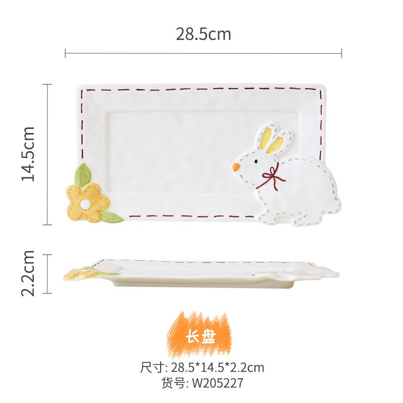 清新设计感陶瓷嫩黄缝线兔盘小号甜品点心桌面西式餐盘浅底水果碟