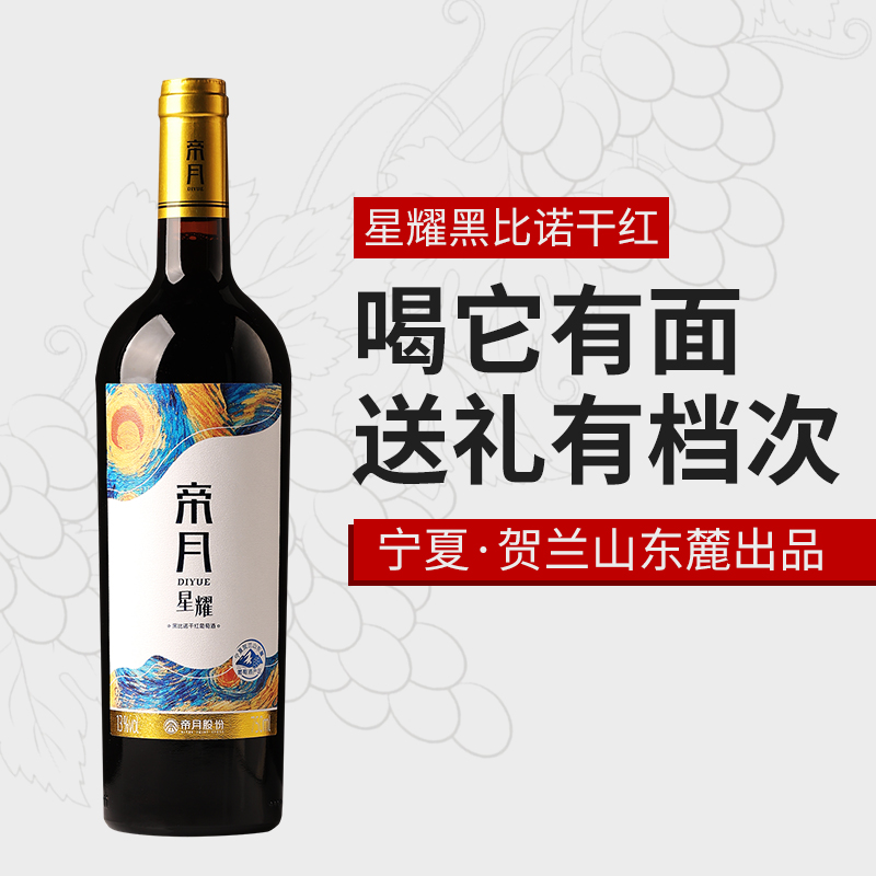 帝月星耀黑比诺干红葡萄酒13度宁夏贺兰山东麓红酒官方正品旗舰店