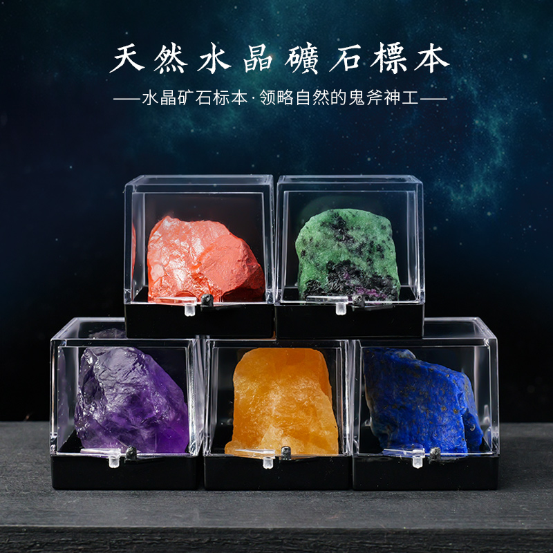 宝石天然水晶矿石标本摆件晶体石儿童礼物青金石石榴石橄榄石萤石