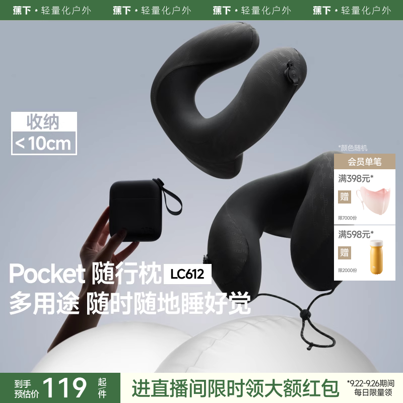 蕉下口袋随行枕充气枕头便携旅行高铁飞机护颈枕按压式充气u型枕