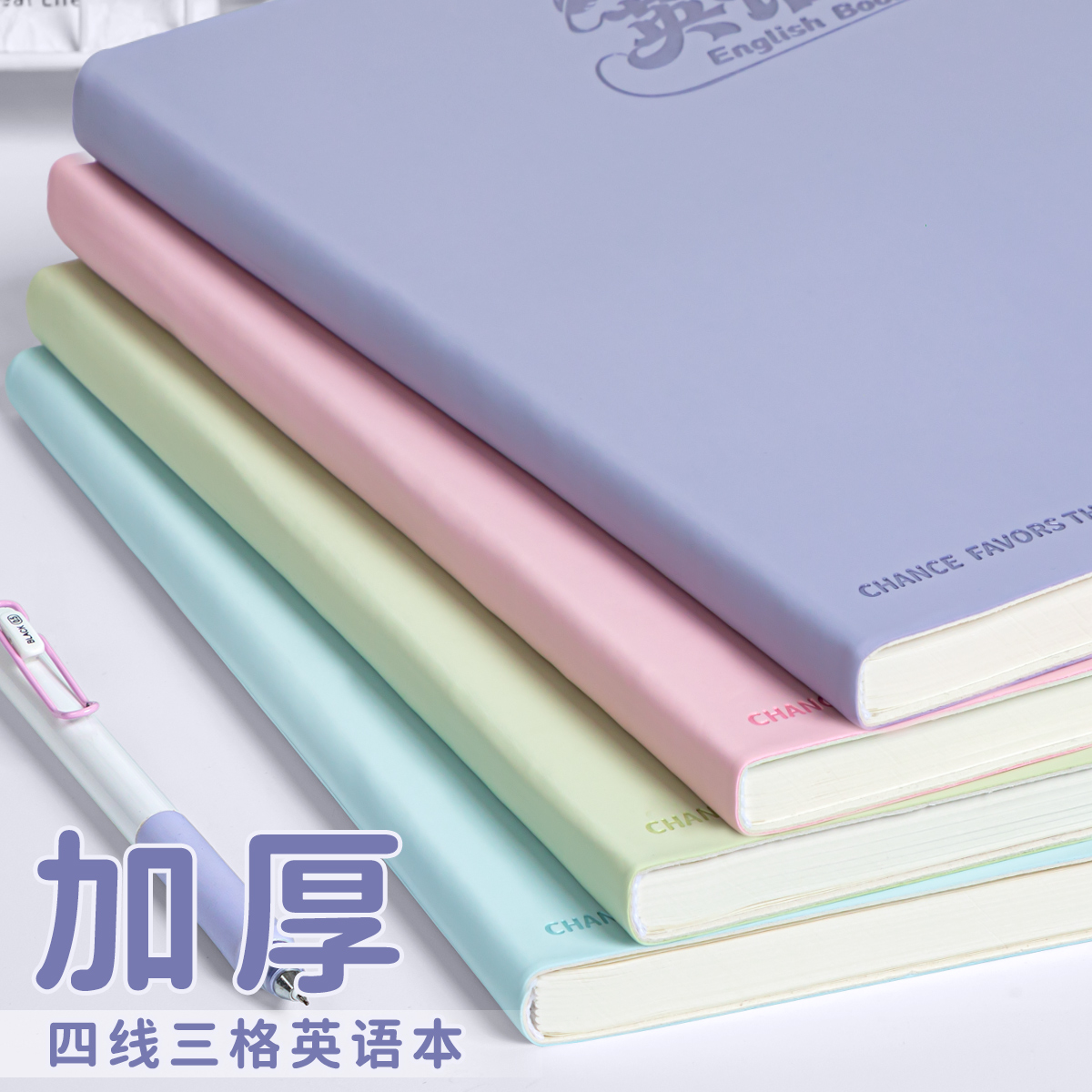 英语本加厚四线三格笔记本子高颜值初中生专用课堂摘抄学习单词作业英文本简约ins学生词汇本英语皮面记事本