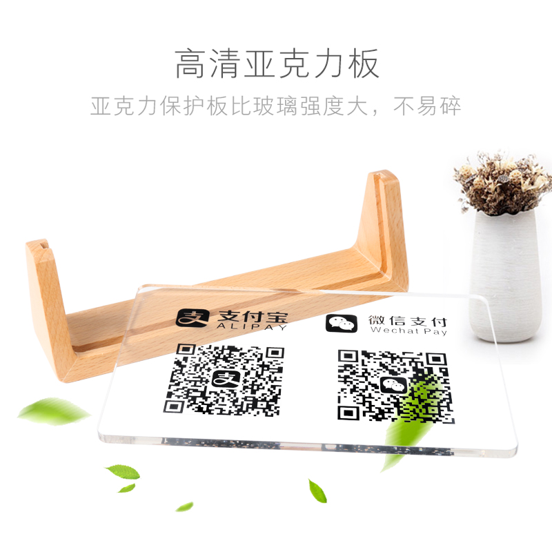 二维码收付款展示牌定制支付宝微信商家店铺收款码制作收银摆台立牌定做亚克力台牌摆件木质收钱扫牌子订制
