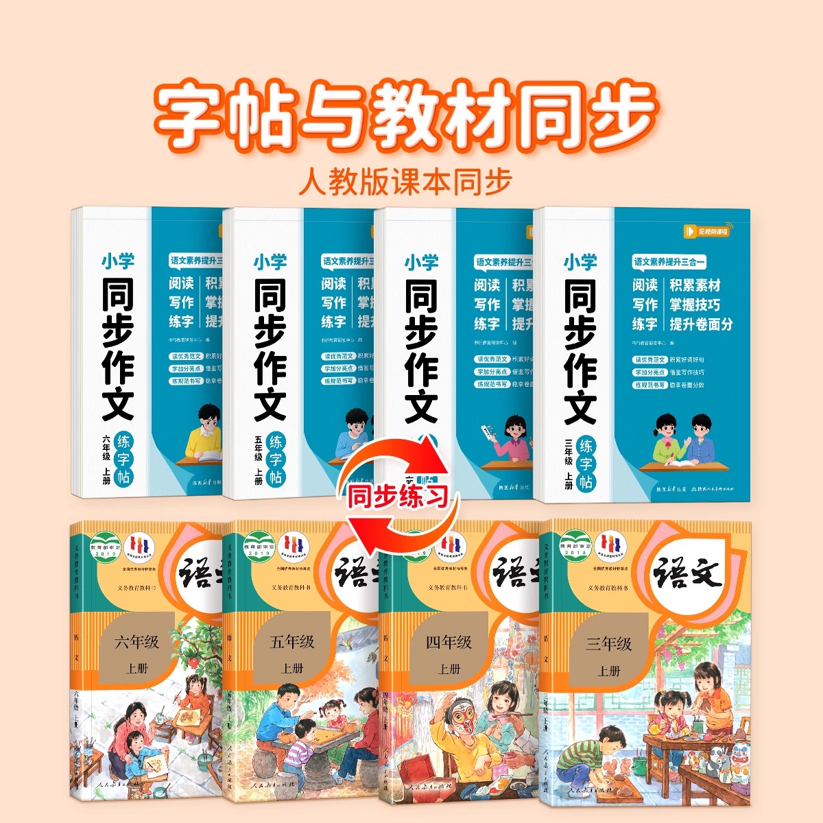 书行3-6年级上册同步作文练字帖小学生专用字帖三年级四五六年级同步字贴每日一练句子积累练字本作文素材12年级看图写话好句好词