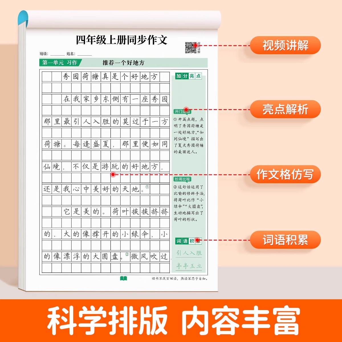 26一本同步作文阅读素材一二三年级上册四年级五六年级上册同步作文计算默写能手阅读训练100篇 语文作文素材模板数学口算计算