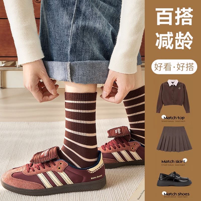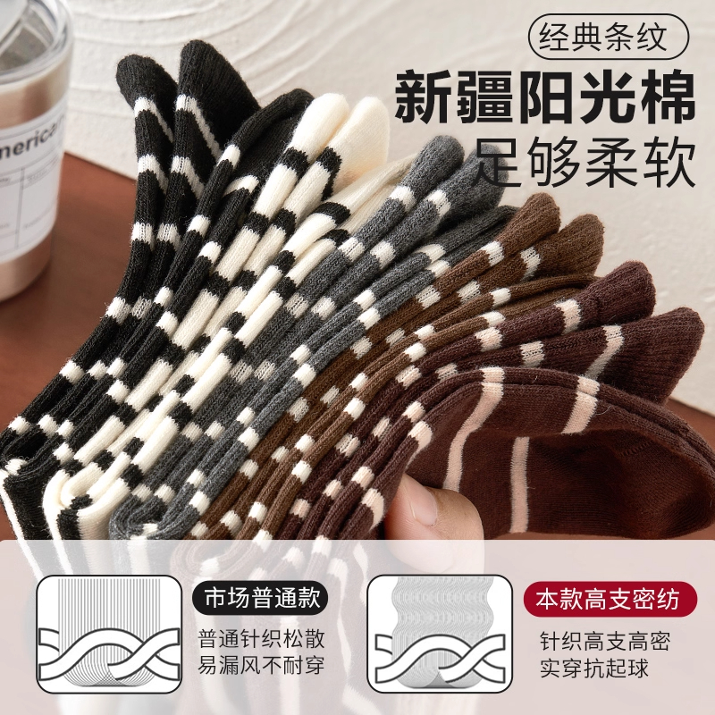 学院风袜子女条纹简约外穿中筒袜 3双装起多规格