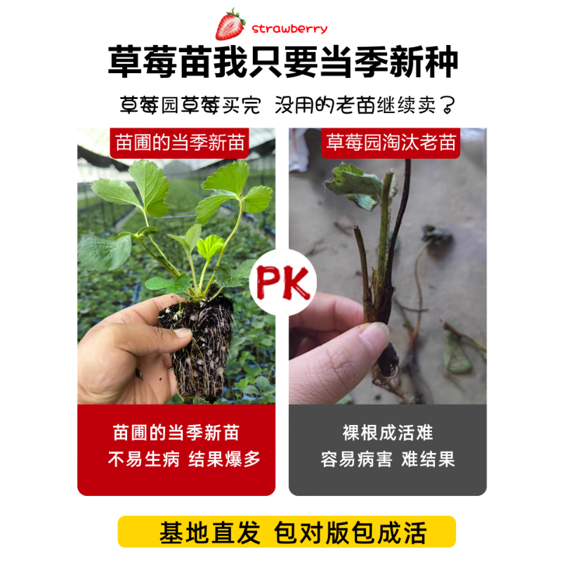 草莓苗秧穴盘苗当年结果新苗室内外好养易活对版基地直发带土带叶