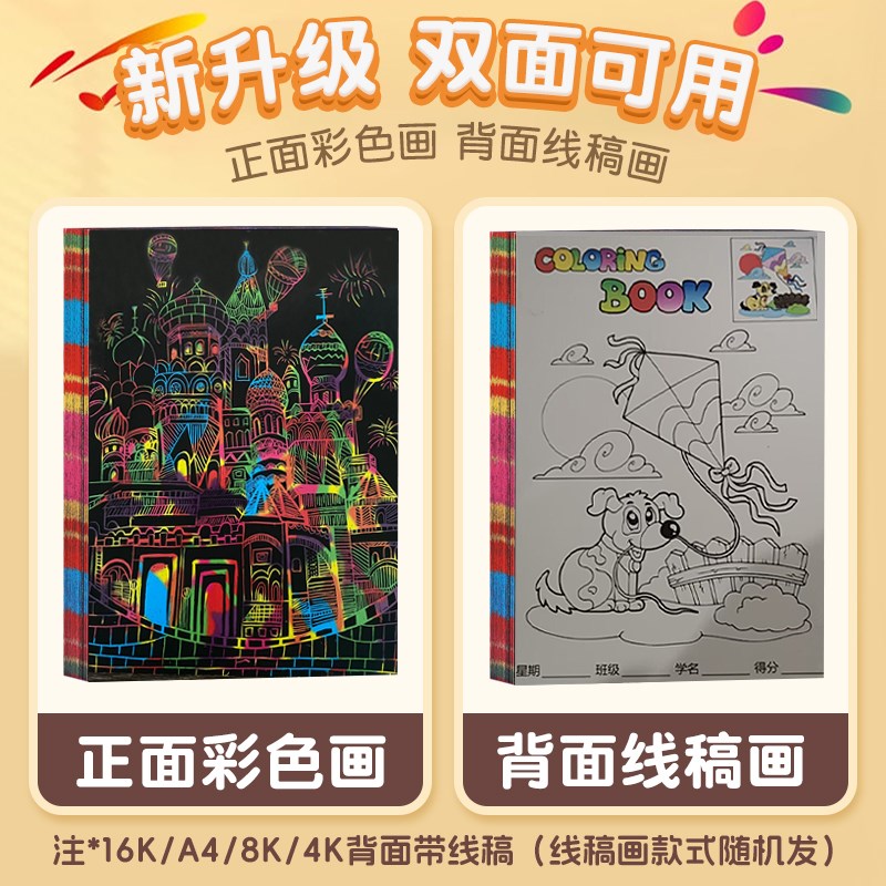 炫彩刮画纸小学生a4幼儿园16k美术8k刮刮画刮画刮刮纸刮蜡纸