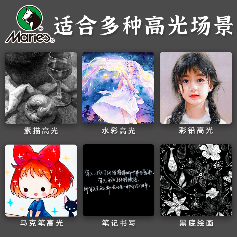 马利白色高光笔白色笔芯素描动漫设计水彩笔手绘美术生彩色高光画笔黑底写白字漫画勾线笔马克绘画笔金色银色