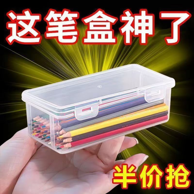 特价加厚透明收纳盒文具收纳盒大容量透明铅笔收纳笔筒装彩铅笔袋