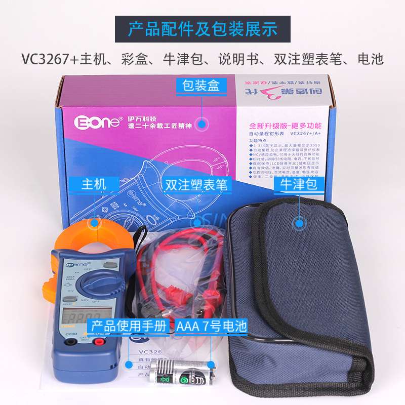 伊万厂家VC3267+自动量程真有效值相对值感应验电万用钳形表