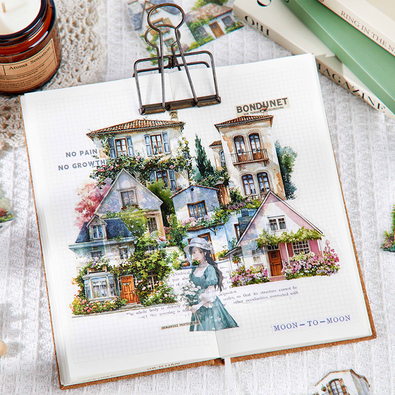 拾光海风之岸贴纸包创意小屋贴纸复古水彩手绘风景手帐造景diy贴