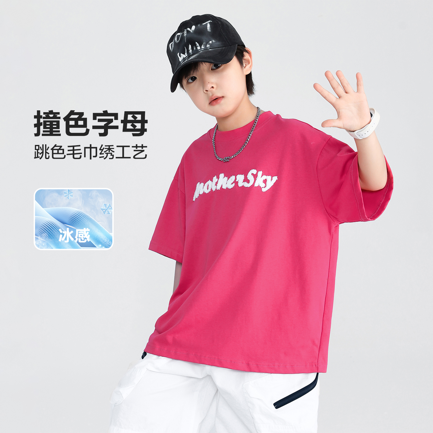 多多家男童T恤短袖凉感儿童半袖纯棉2025夏装新款中大童印花上衣