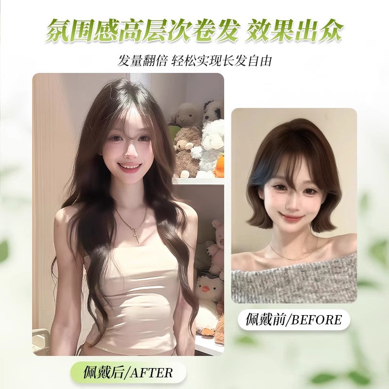 超轻薄假发片一片式高层次长卷发接发片仿真蓬松增发量接长发贴片