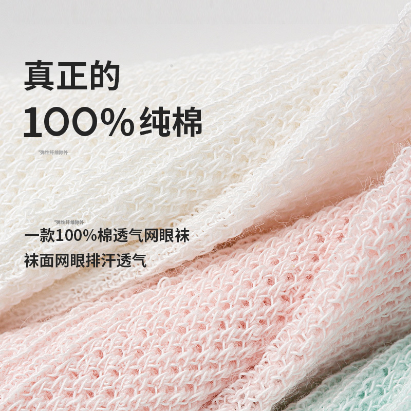 六指鼠100纯棉无骨儿童网眼袜夏季薄款学生白色男童女童全棉中筒