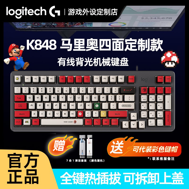 罗技K848有线客制化机械键盘热插拔静音轴电脑电竞游戏办公用K845