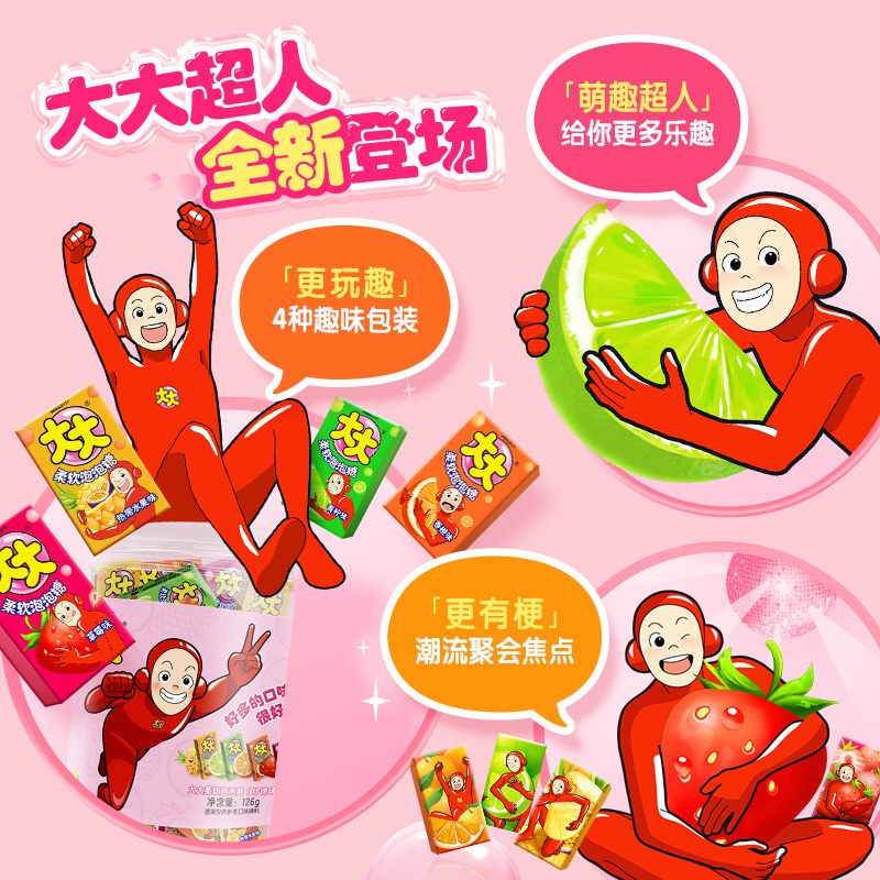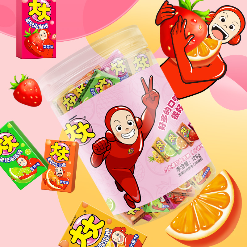 大大泡泡糖什锦味126g罐装口香糖儿童怀旧零食休闲小吃食品