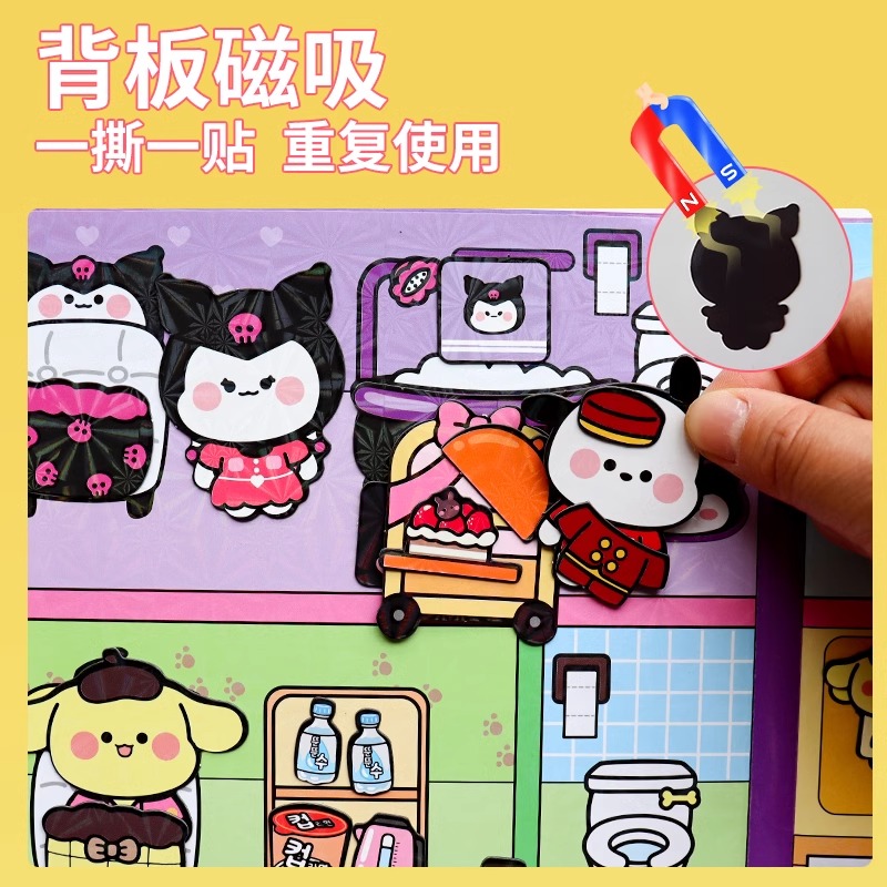 三丽大酒店磁力安静书鸥免裁剪免制作换装贴纸书磁铁软磁反复粘贴