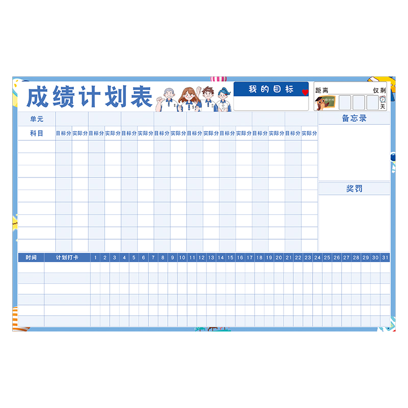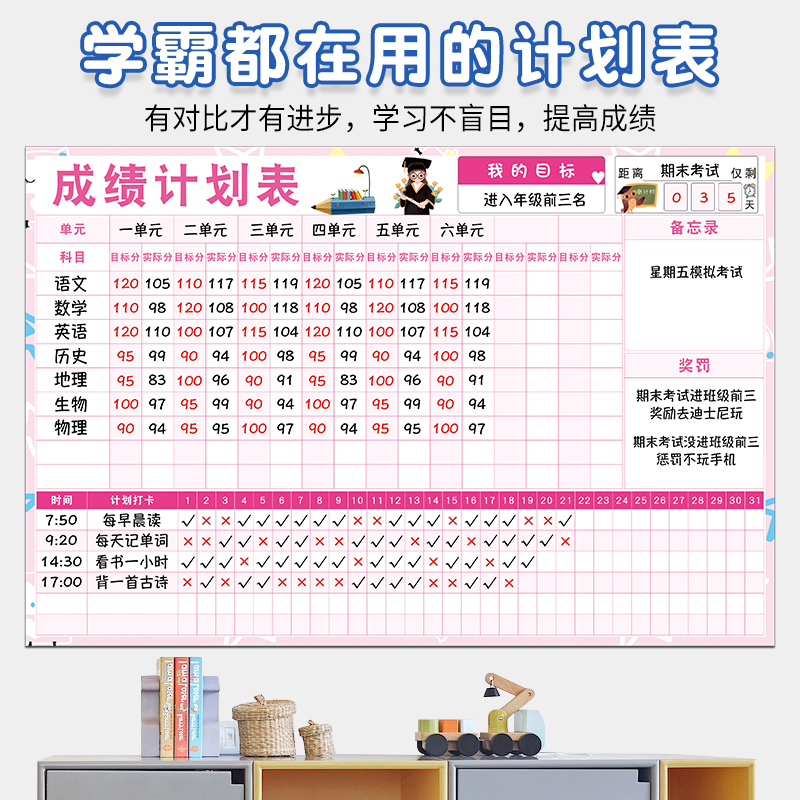 新学期开学磁性学习成绩计划表学生自律打卡表作息时间课程墙贴