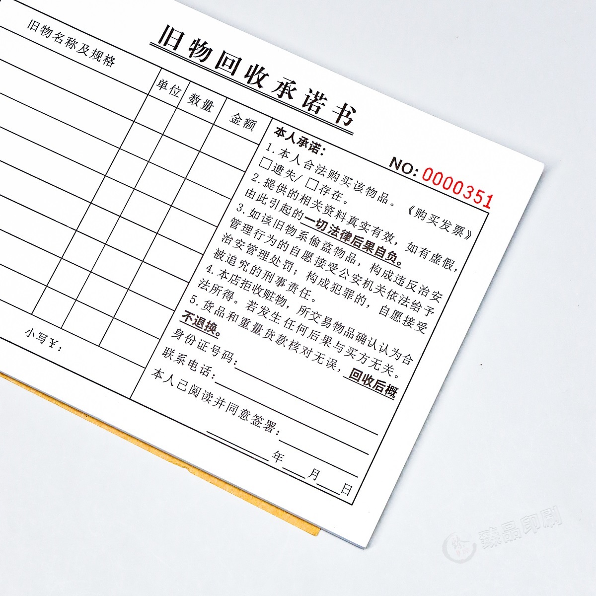 寄卖行旧物来源承诺书一联二联黄金手机奢侈品寄卖回收登记表定制