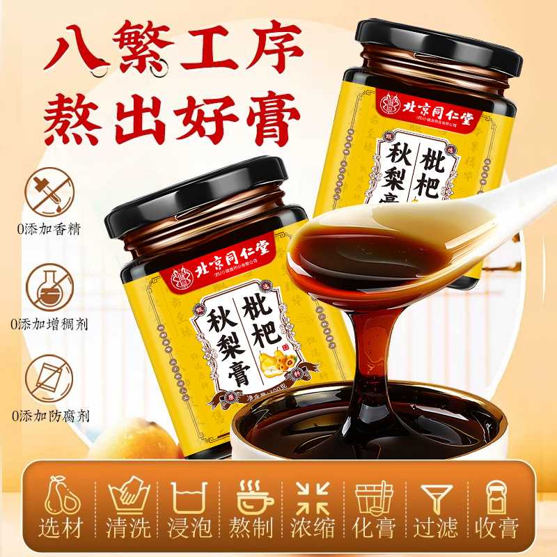 北京同仁堂枇杷秋梨养生膏止咳润肺化痰多咳嗽不止老人儿童泡水喝
