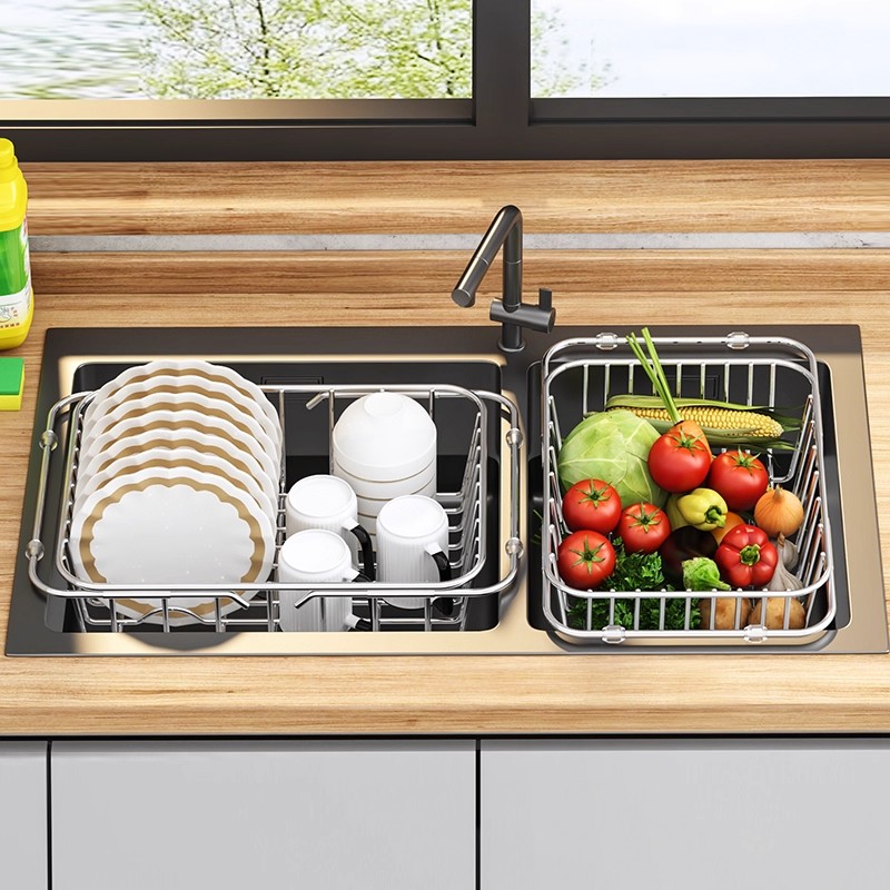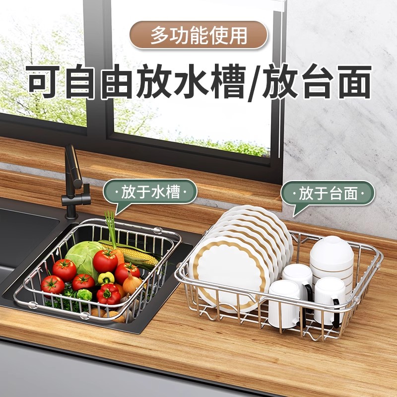 沥水篮304不锈钢厨房水槽伸缩洗菜盆洗碗水池沥水蓝橱柜置物餐具
