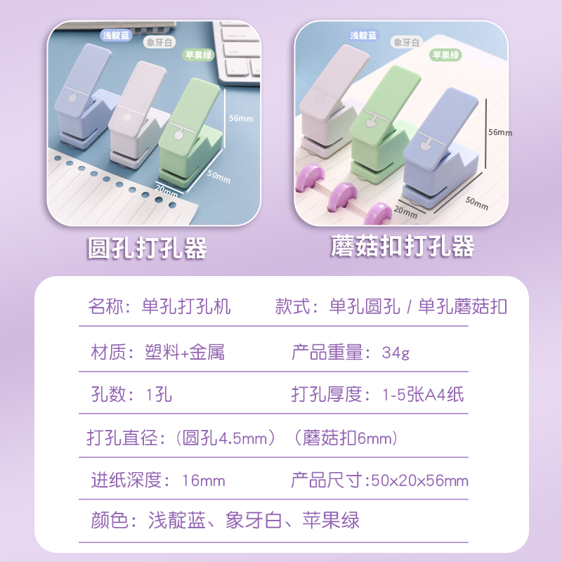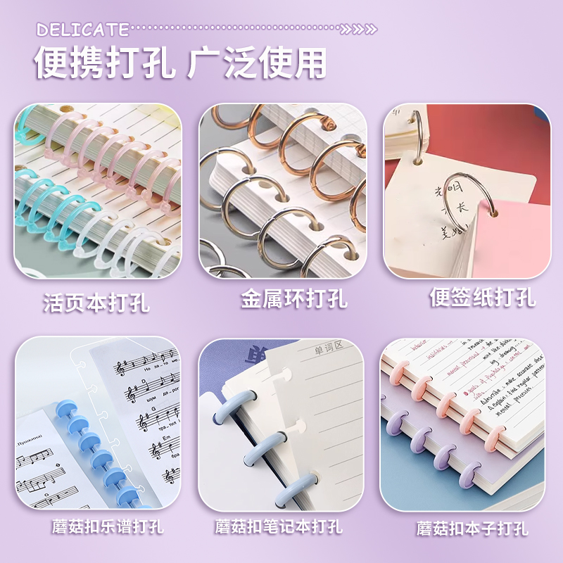 蘑菇扣打孔器学生专用活页本打孔机ins高颜值单孔打孔圆孔打孔