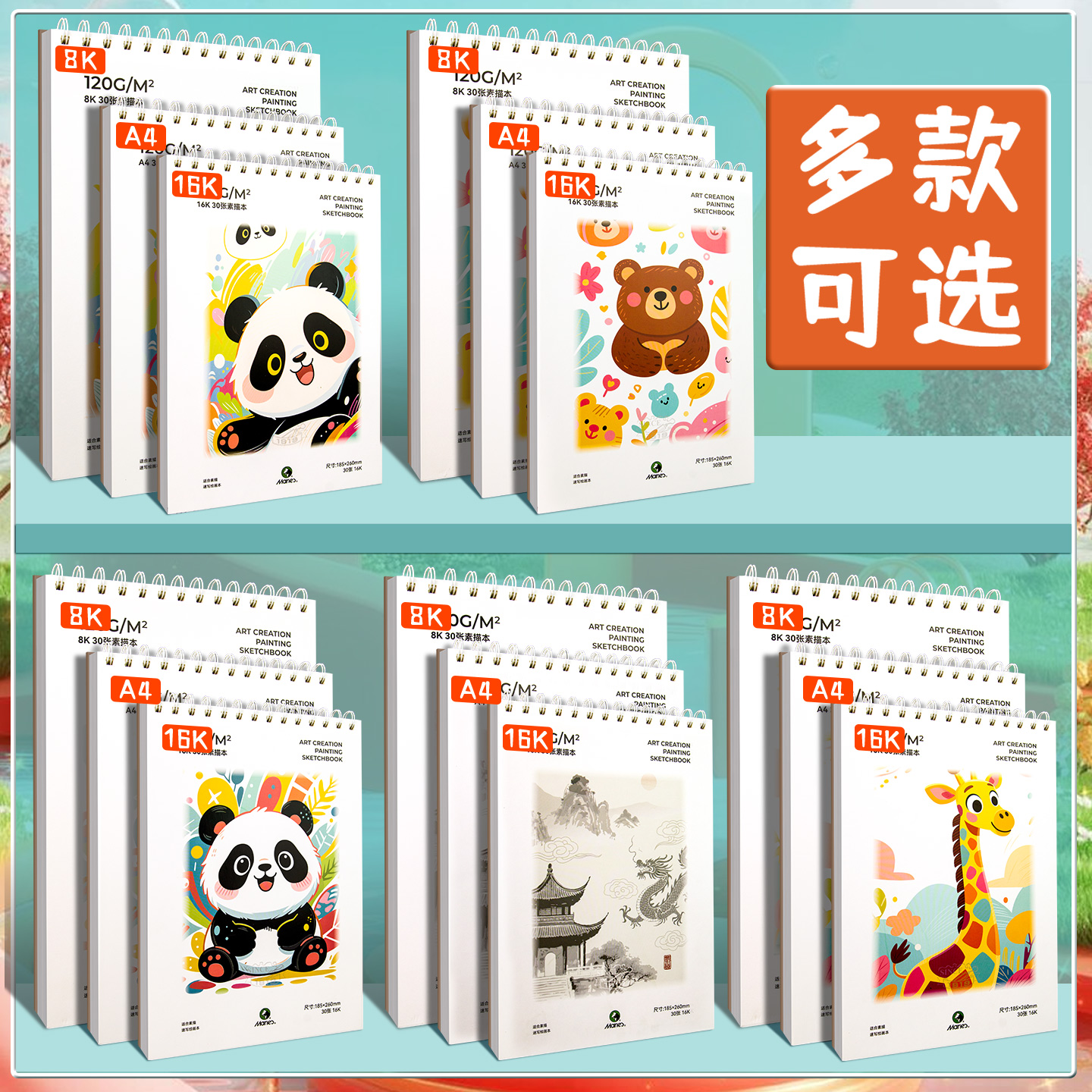 马利素描本a4绘画本8k速写本16k美术生专用小学生油画棒画画本美术本图画水彩彩铅专用加厚儿童素描纸