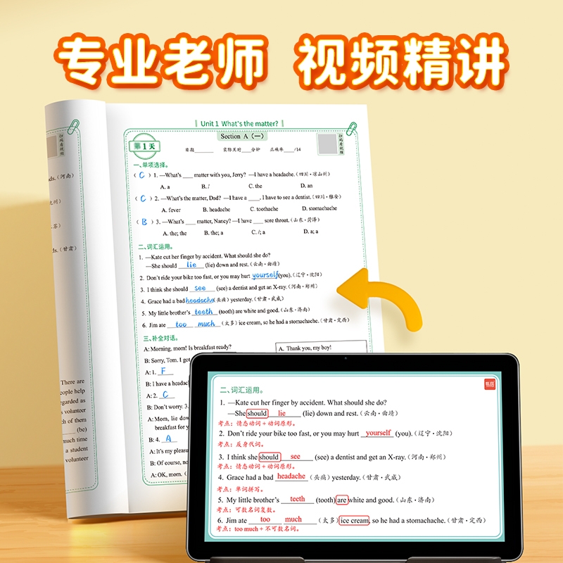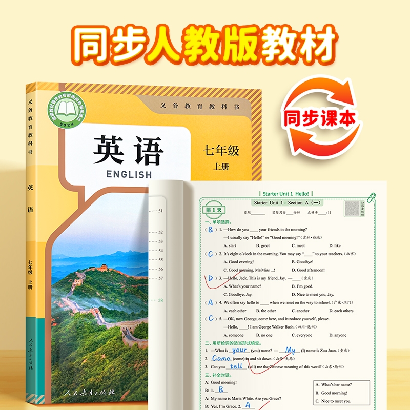 【易蓓直营】初中英语同步训练每日一练人教版背记清单七八年级上下册阅读理解完形填空中考真题必背知识点归纳总结全套同步练习册