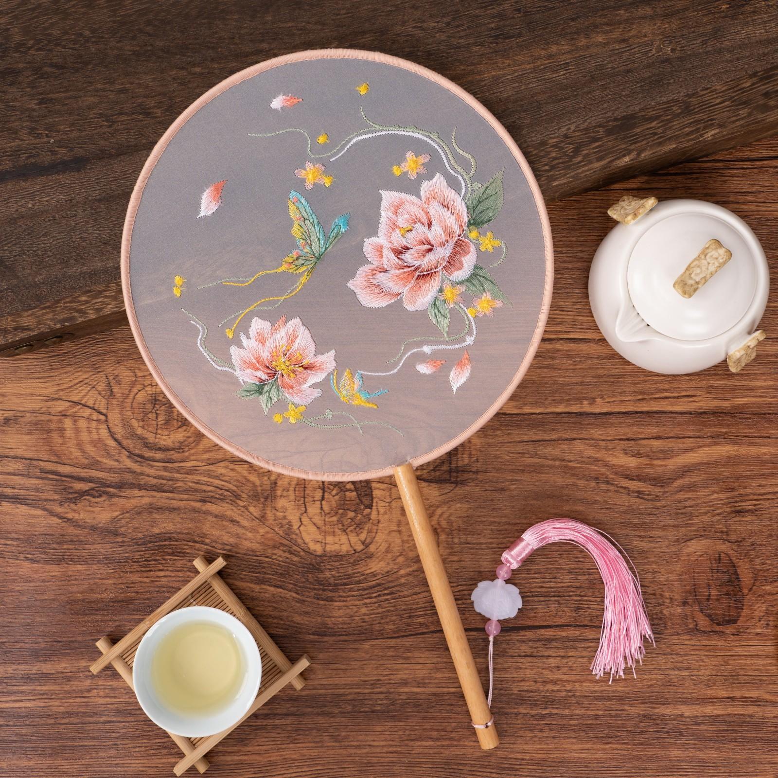 双面绣古风圆扇刺绣团扇凤冠枝头孔雀汉服专用苏绣百搭舞蹈扇