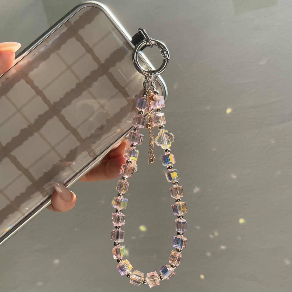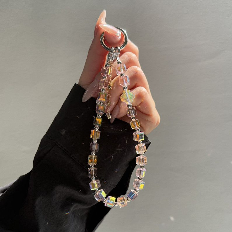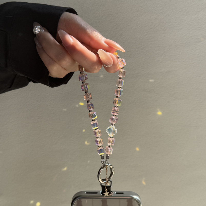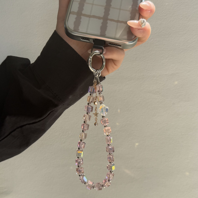高级爆闪方可串珠手机挂链奢华星星带夹片挂绳手腕短款挂饰