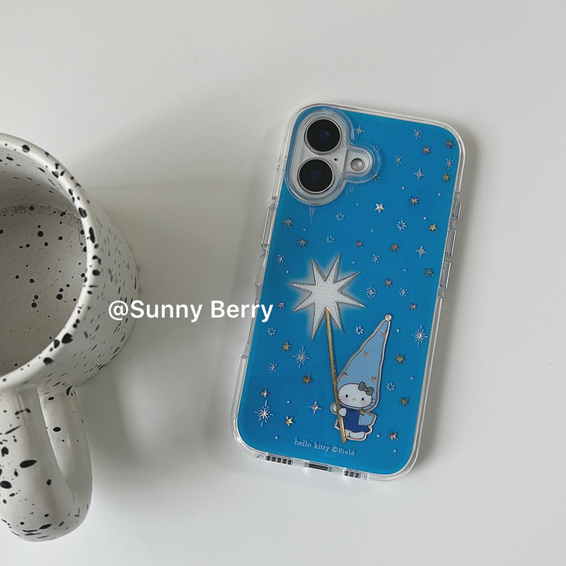 向日的浆果ins小众夏日蓝色彩钻星星高帽猫咪可爱少女心适用苹果17pro手机壳iphone16promax/15/14保护套防摔