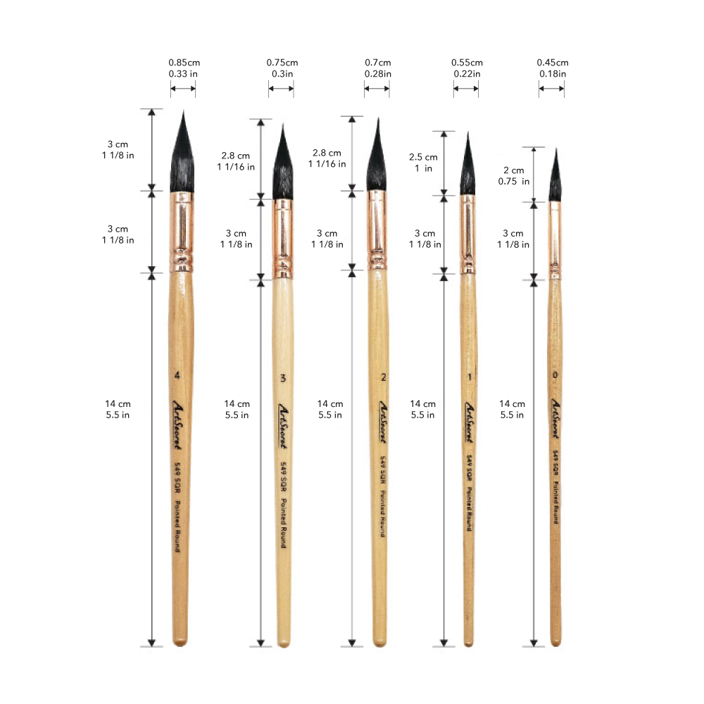 秀明ArtSecret灰鼠毛混羊毛尖形笔549改良更尖水彩丙烯画鞋画笔