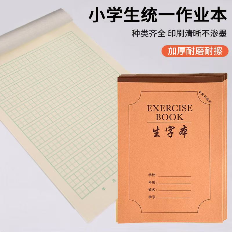 16K作业本加厚米黄护眼中小学生语文英语数学生字田格统一课业本