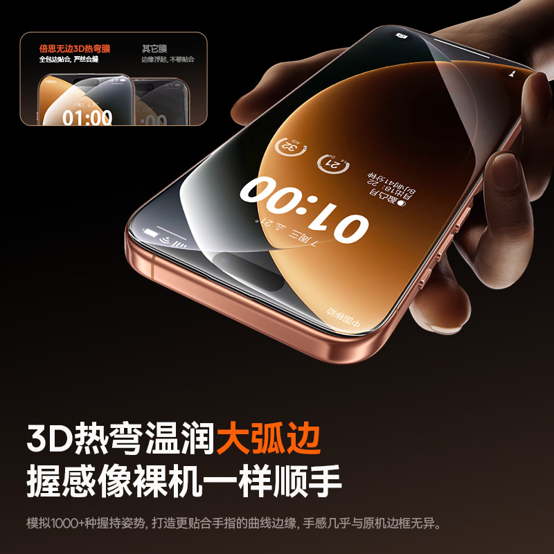 【全覆盖/无黑边】倍思新款3D热弯膜Lite抗反射适用苹果iPhone17ProMax钢化膜16Pro无尘仓手机贴膜17保护防摔