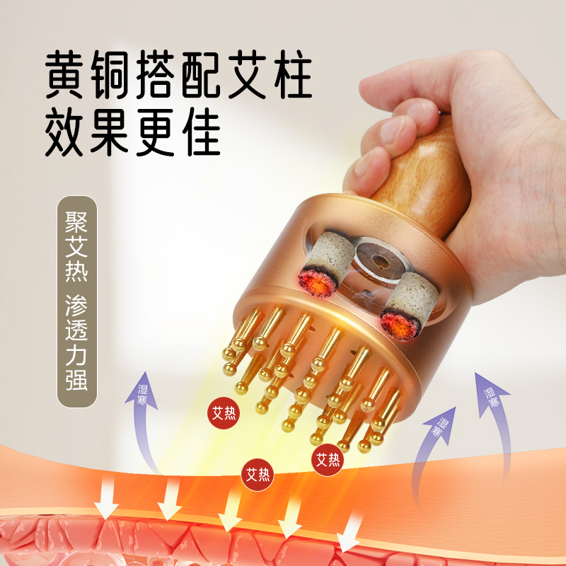 纯黄铜艾灸刷按摩刮痧肝胆刷揉腹经络艾灸脂肪推拿艾灸刮痧一体罐