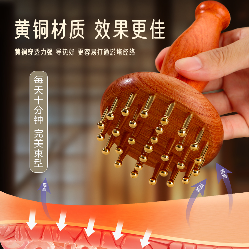 黄铜揉肚子神器按摩腹部疏通肝胆全身通用带脉经络刷美容院精油刷