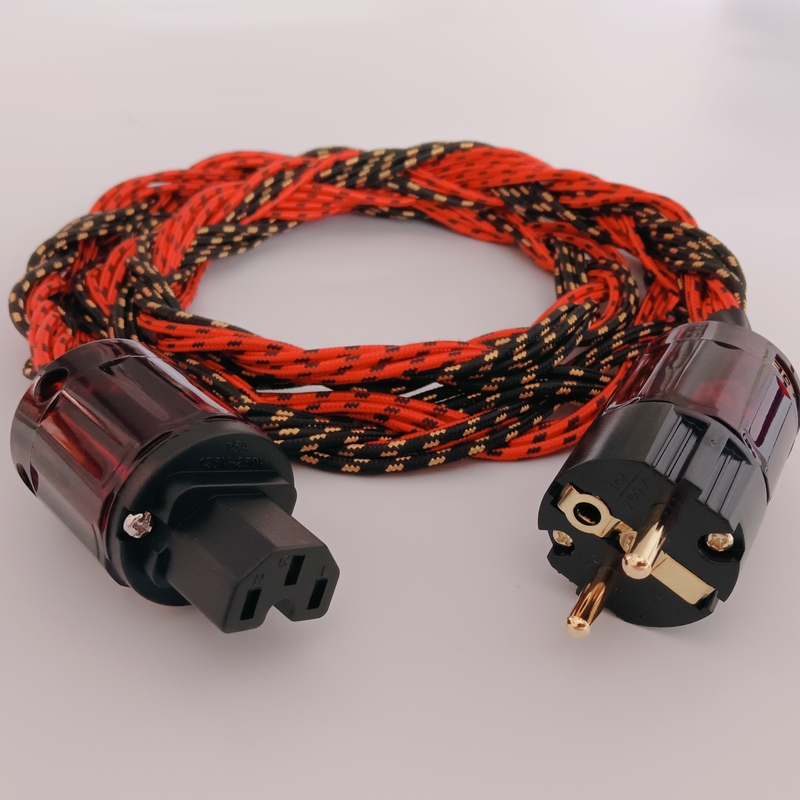 彩色麻皮 布皮 纯铜12芯西电线 电源线 胆机最爱 欧标发烧线材