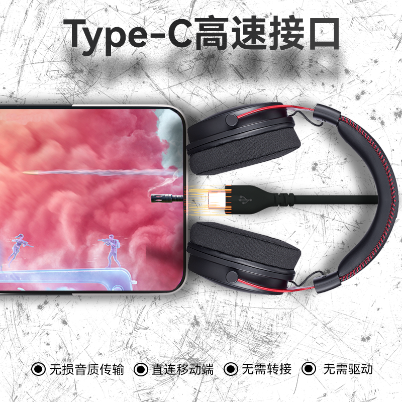 宾果利维坦头戴式耳机Type-C接口平板电脑脚步声吃鸡游戏电竞耳机