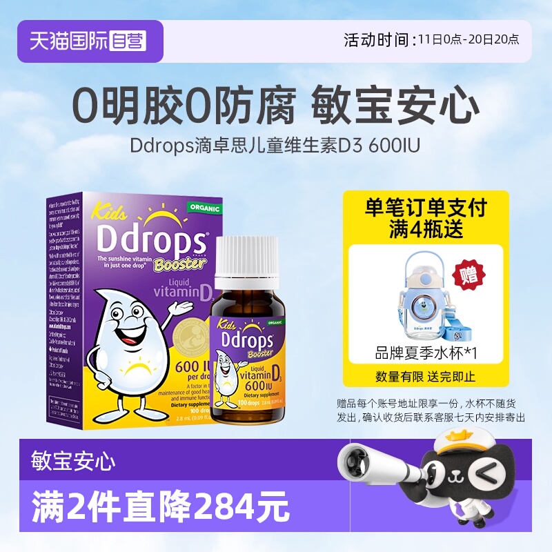 【自营】Ddrops滴卓思维生素d3滴剂婴幼儿维D一岁以上儿童宝宝vd3