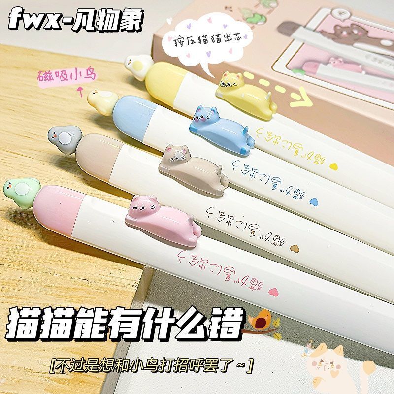 凡物象按动笔ins高颜值猫猫能有什么错刷题笔黑色0.5mm黑笔中性笔