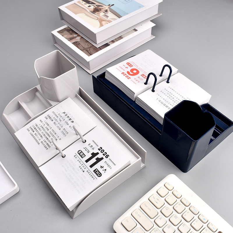台历2026台历架办公桌面摆件每天一页日历64K台历芯ins风创意简约商务日历架子带笔筒收纳盒马年台历本可换芯
