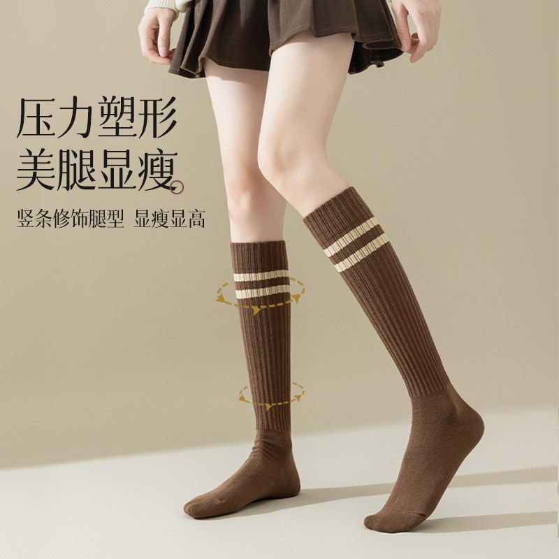 压力小腿袜女春秋款强压瘦腿袜日系jk袜过膝长筒袜咖色学院风长袜